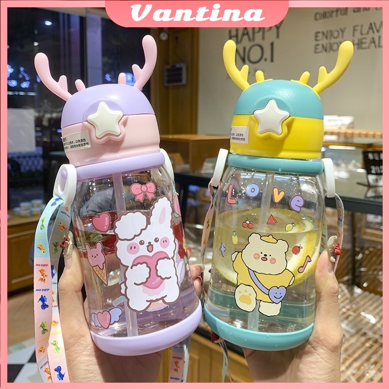 Spesifikasi Botol Minum Tanduk Rusa Tali Sedotan/ Botol Minum Anak Lucu 600 ML Anti Tumpah Anti Pecah BPA FREE