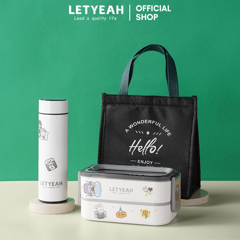 Spesifikasi LetYeah DIY sticker 1600ml kotak makan set/ lunch bag set +500ml Cangkir termos